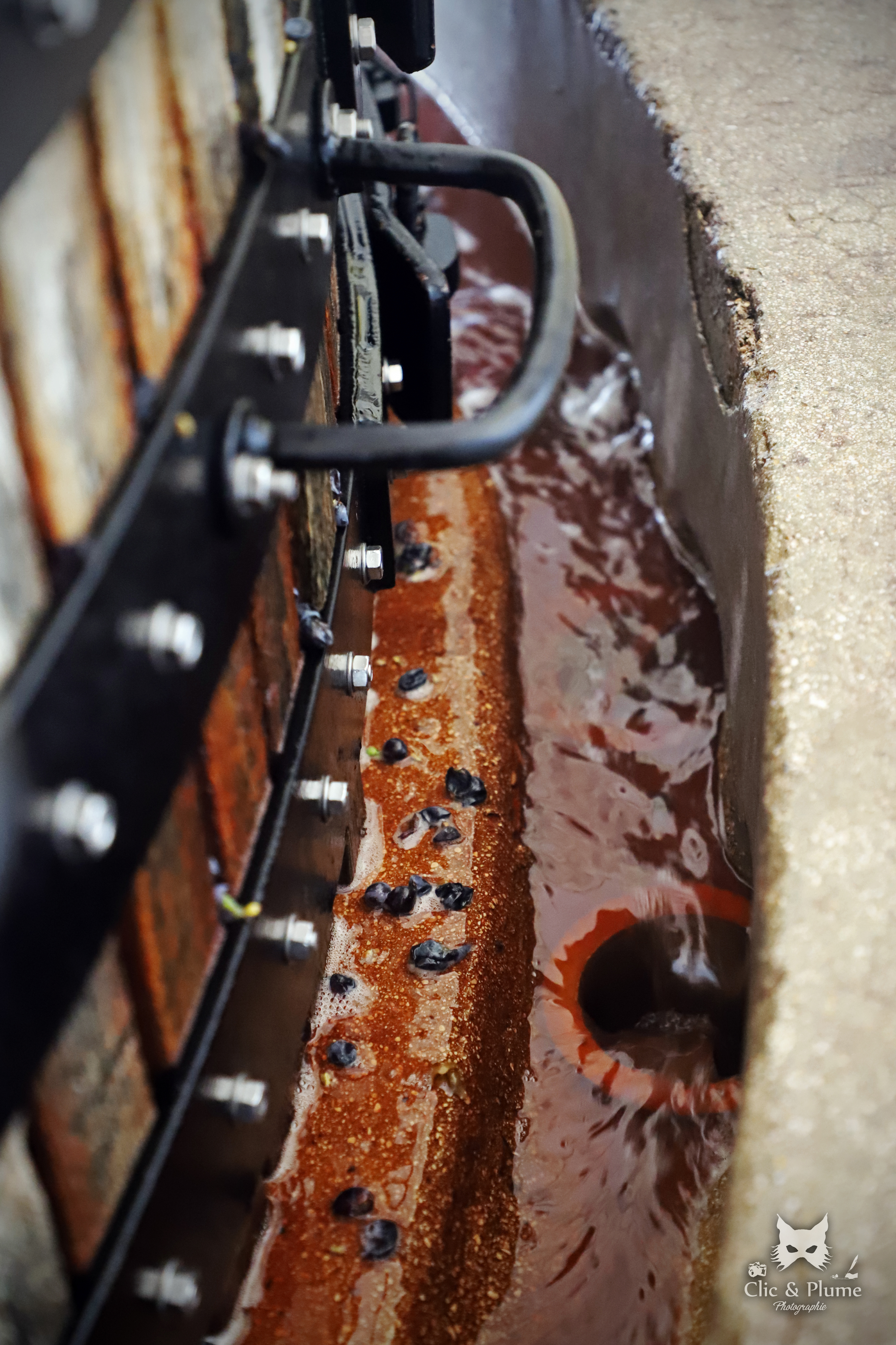 Écoulement des jus avec un pressoir traditionnel – Champagne Robert Allait de Villers sous Châtillon.